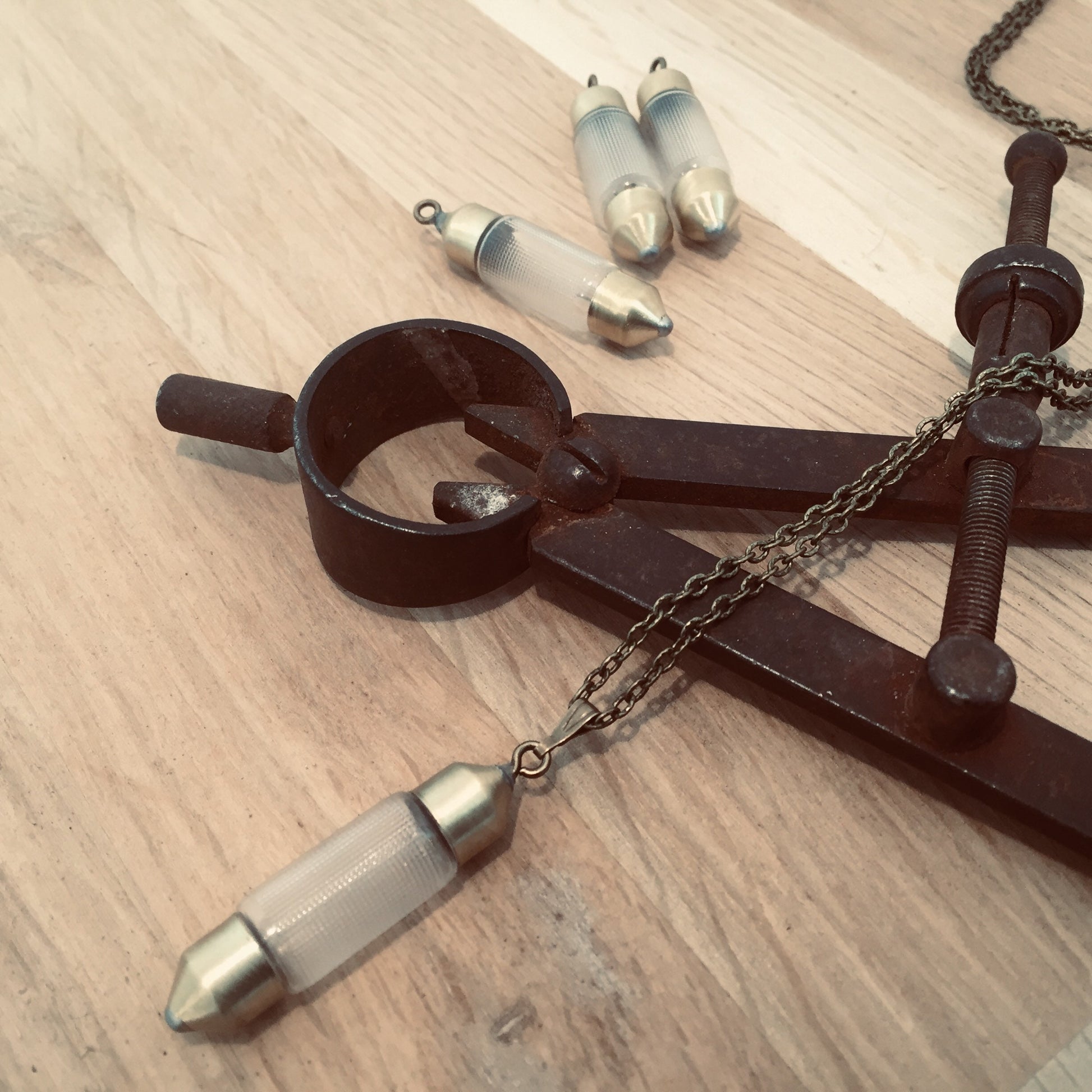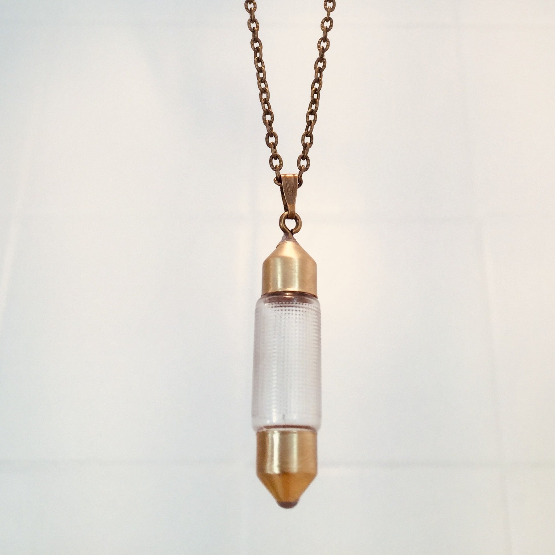 Long collier pendentif fabriqué à partir d’authentiques petites ampoules de plafonnier de voiture !