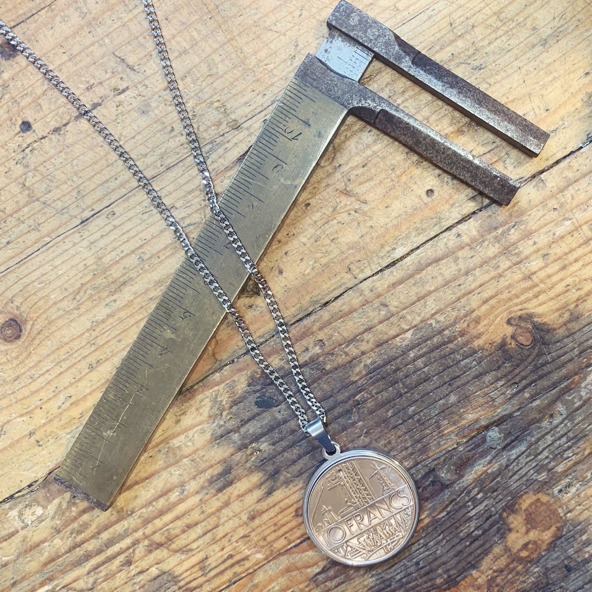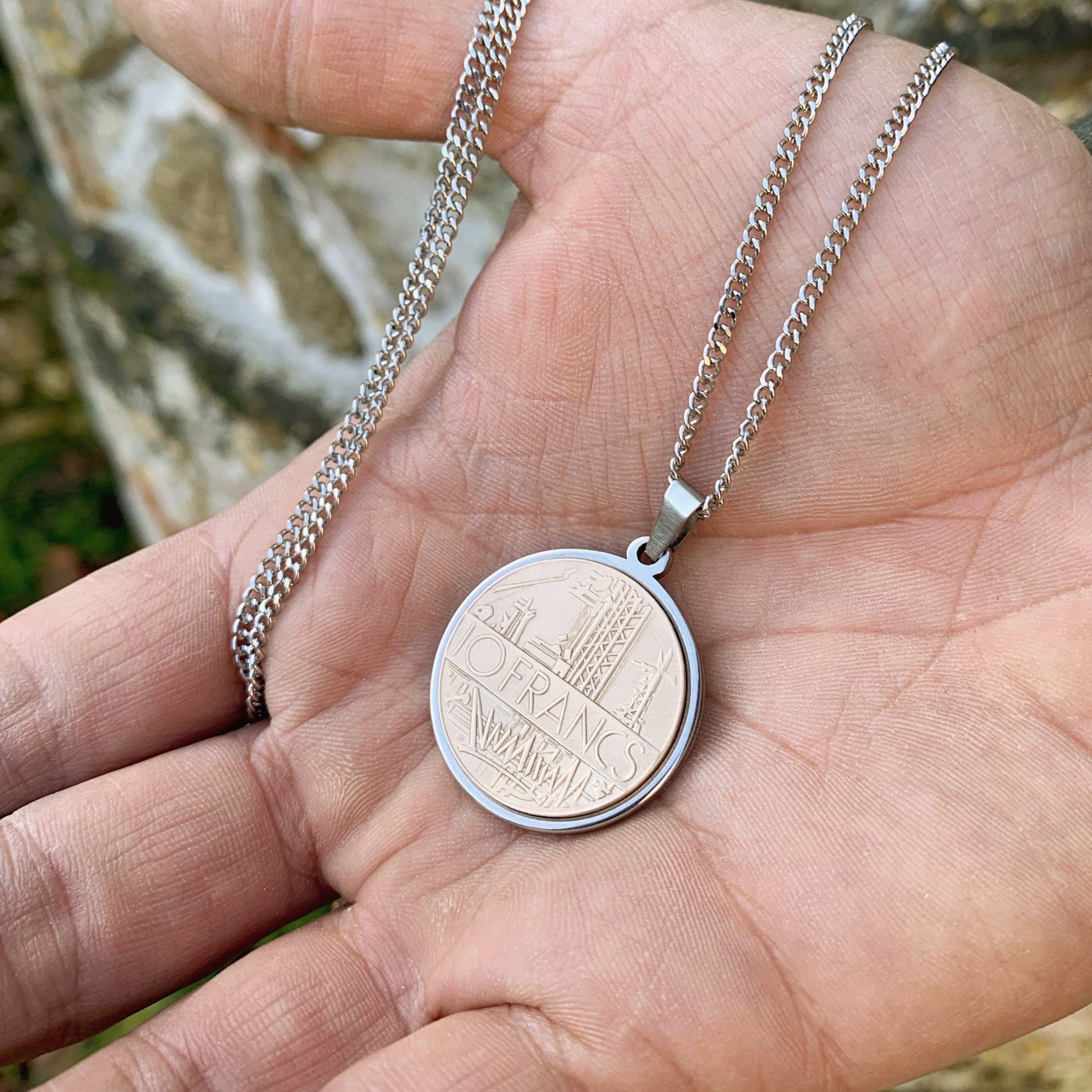 Collier pendentif fabriqué à partir d’authentiques anciennes pièces de monnaie française des années 1980 💰💰💰