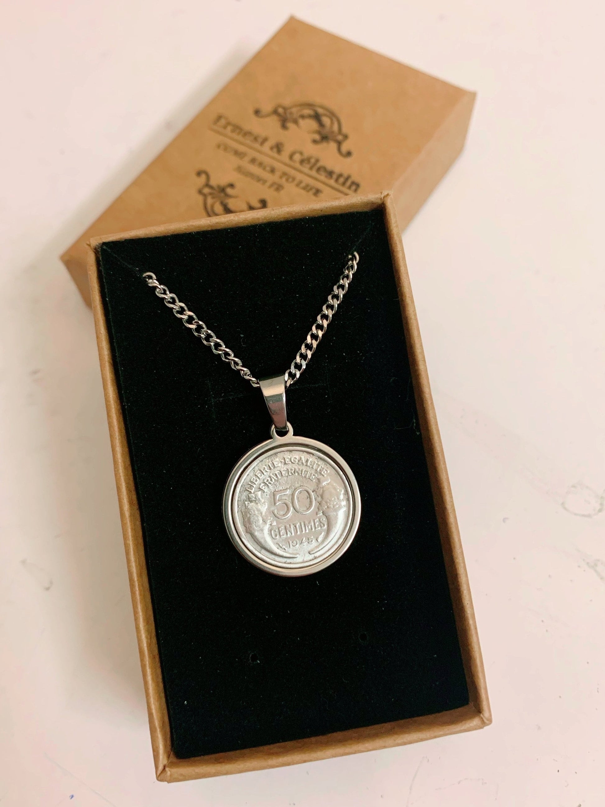Médaille, collier, pendentif fabriqué à partir d’authentiques anciennes pièces de monnaie française 💰💰💰